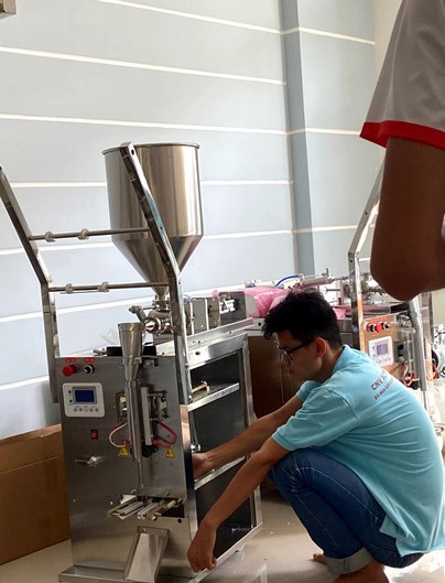 Một số hình ảnh thực tế về máy đóng gói nước mắm tự động do công ty CNV Automation lắp đặt cho khách hàng