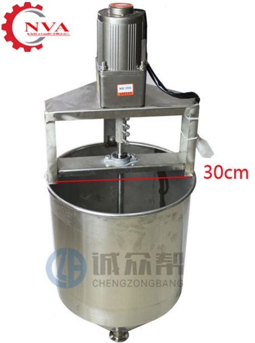 Do nguyên liệu à dạng sệt đặc + các hạt hay thành phần chất rắn thì cần cơ cấu máy khấy để trộn đều nguyên liệu trong sản phẩm trong quá trình đóng.
